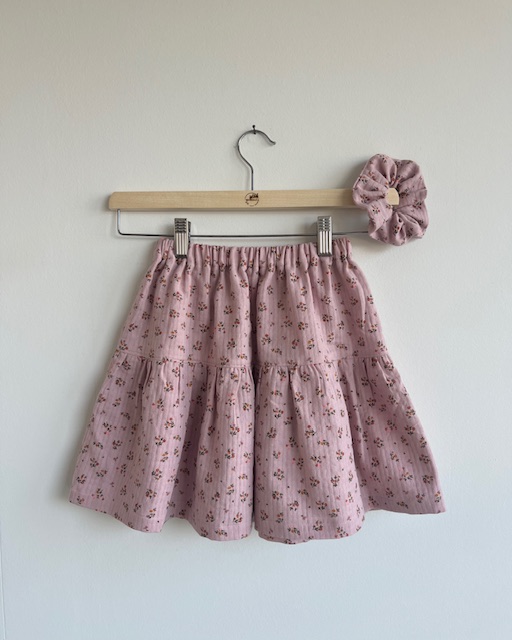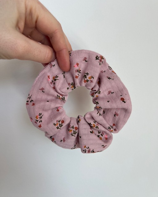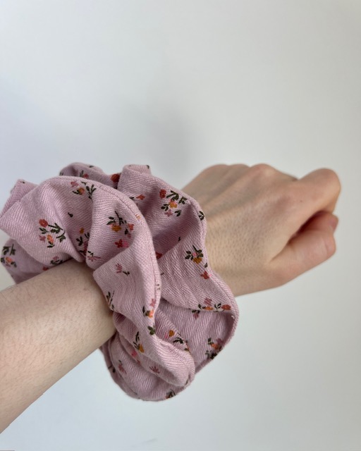 Scrunchie aus Bio Baumwolle mit Blumen auf Rosa